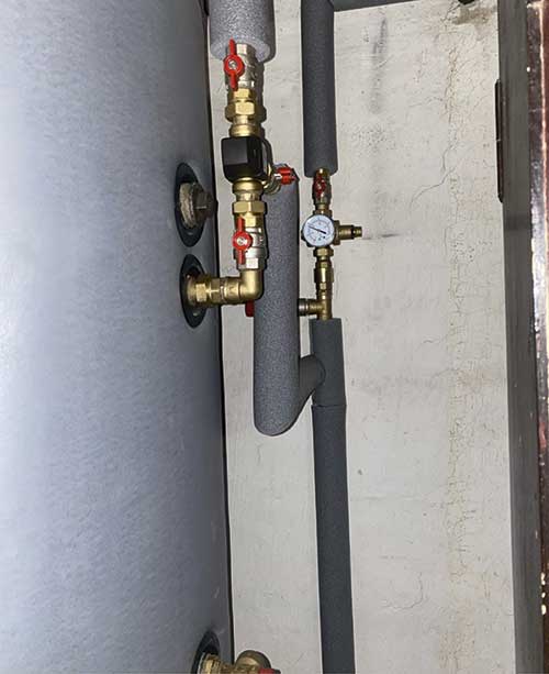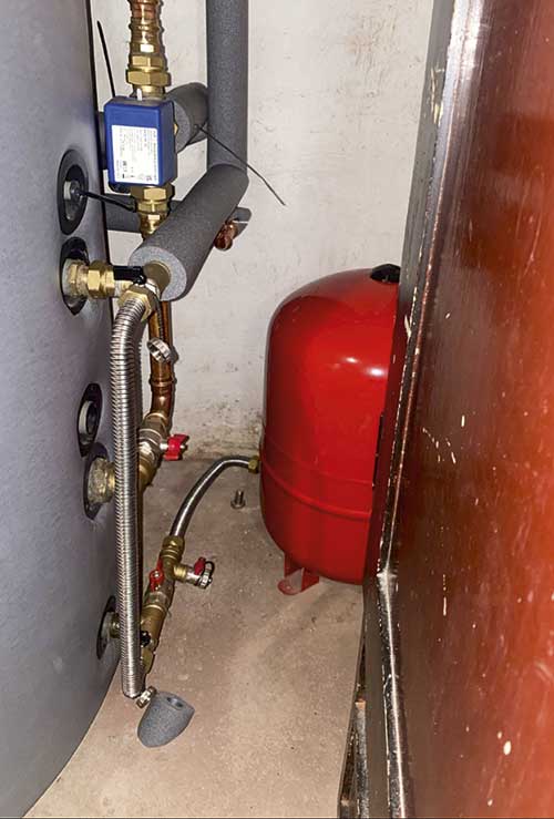Besonders bitter im konkreten Fall: Sowohl die bestehende Gasheizung als auch der Holzkessel wurden laut Becker hy draulisch und regeltechnisch nicht in das neue Wärmepumpensystem integriert. Der zur Wärmepumpe gehörende neue Trinkwassererwärmer wurde nicht genutzt, stattdessen der bestehende Trinkwassererwärmer erneut angeschlossen. Die Zirkulation war ohne Funktion, die maximal mögliche Auslauftemperatur betrug aufgrund der falschen hydraulischen Einbindung 45 °C. Die Dämmung war völlig unzureichend und teilweise mit Kabelbindern befestigt, berichtet der Sachverständige.