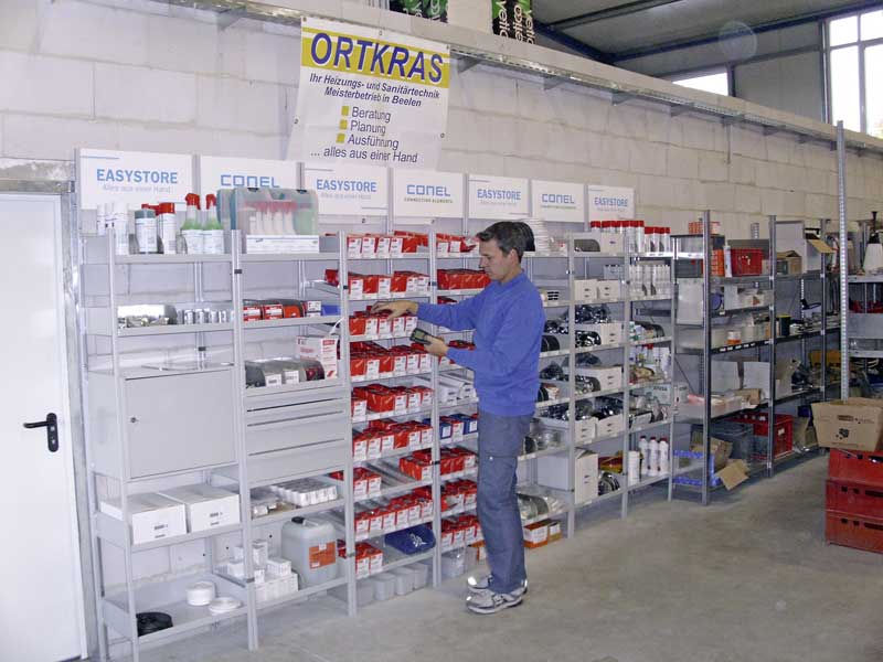 Eine Lagerwirtschaft mit System, die übersichtlich gestaltet ist und keine Bestandslücken aufkommen lässt, dient als Basis für den Unternehmenserfolg. Das dieses Ziel im täglichen Arbeitsablauf aber nicht leicht zu erreichen ist, hat Sebastian Ortkras, Installateur- und Heizungsbaumeister sowie Betriebsinhaber von Ortkras Heizungs- und Sanitärtechnik in Beelen, erfahren. Als Lösung für eine effiziente Lagerhaltung hat sich der Handwerksunternehmer vor über zwei Jahren für das Regalsystem „Easystore“ von Conel entschieden. Für die Bereitstellung der Regalmodule musste er mit dem „Easystore“-Partner vor Ort eine Mindestabnahme von Installationsprodukten für die Bestückung vereinbaren. Ob sich dies für ihn rechnet und welche Vorteile er in dem Regalsystem für seinen Betrieb sieht, berichtet der 33-Jährige im IKZ-Interview.