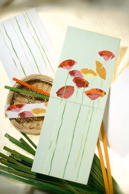 Die Fliesenserie "Poesie" spricht den anspruchsvollen Romantiker an und lädt mit zehn Komponenten zum spielerischen Gestalten ein. Blumen- und Streifenstreuer passen aneinander und ergeben, als Set verlegt, einen leuchtenden Blickfang: Im Bad scheint eine Mohnblumenwiese zu wachsen. Das "keramische Material" dazu besteht aus zwei Grundfliesen, vier Streuern, zwei Bordüren und zwei Listelli. Die Grundfliesen sind weiß-matt bzw. grün-matt glasiert und mit zarten Lüsterlinien bedruckt. Zur Dekoration gehören jeweils ein Blumenstreuer, ein Streifenstreuer und eine Blumenbordüre. Komplettiert wird das Ganze durch eine grüne und eine orange handgemalte Leiste.