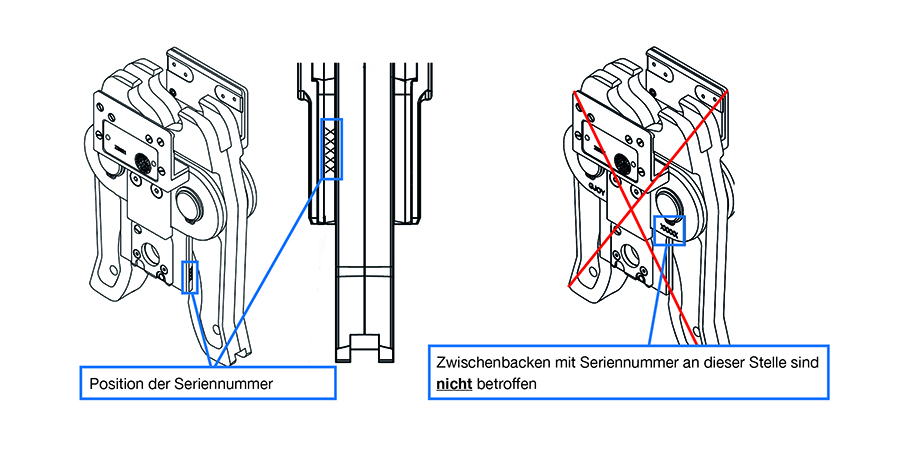 „Geberit hat die betroffenen Zwischenbacken gründlich getestet und festgestellt, dass bei einigen Backen das Ende der Lebensdauer erreicht war und ein Brechen mit Verletzungsgefahr nicht mit Sicherheit ausgeschlossen werden kann“, sagt Pietro Mariotti, Head of Products Piping Systems bei Geberit. Im Interesse der eigenen Sicherheit sollten die Zwischenbacken ZB 321 mit den Seriennummern 101 bis 5228 ab sofort nicht mehr verwendet werden. Sie seien umgehend auszumustern und zu entsorgen.