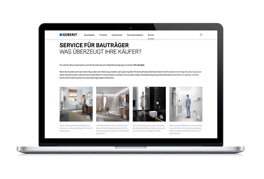 Pfullendorf. Die Badausstattung ist für Interessenten eines Bauträger-Objekts besonders ausschlaggebend, meint Geberit. Immerhin werde das Bad etwa 25 Jahre unverändert genutzt. Daher will der Sanitärhersteller Verantwortliche bei Bauträgern mit einem neuen Service-Portal unterstützen. Für jede Phase des Projekts sollen sie Material oder Tools vorfinden: Von der Planung über die Bemusterung bis zur Erstellung der Beratungsunterlagen für das persönliche Verkaufsgespräch mit ihren Kunden. Unterschieden werden drei Badgrößen sowie Bauherrentypen nach Anspruchslevel: junge, anspruchsvolle und designbewusste Bauherren. Für die Planungsphase sind Tools wie z.B. der 3D-Badplaner oder der Waschplatz-Konfigurator eingestellt. Für die Kommunikation mit Interessenten stellt Geberit auf dem Service-Portal u.a. Bildmaterial und Informationen zur Verfügung.