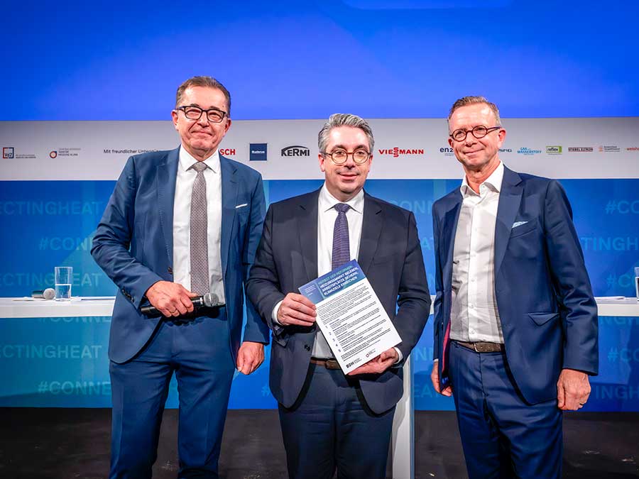 Köln/Berlin/Sankt Augustin. Der Bundesverband der Deutschen Heizungsindustrie (BDH) und der Zentralverband Sanitär Heizung Klima (ZVSHK) haben im Rahmen der Deutschen Wärmekonferenz #connectingheat in Berlin ein gemeinsames Forderungspapier an Stefan Rouenhoff, Parlamentarischer Staatssekretär im Bundesministerium für Wirtschaft und Energie (BMWE), überreicht. Darin warnen die beiden Spitzenverbände der Heizungsbranche vor den Folgen der anhaltenden Marktschwäche und fordern von der Politik ein rasches und verlässliches Gegensteuern.