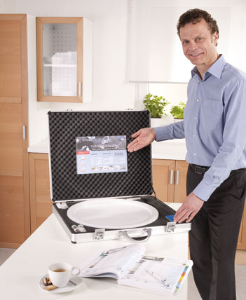 Lars Kreutz: Der Koffer dient den Außendienstkollegen ja seit der Erstpräsentation von Silgranit PuraDur II im Herbst 2008 zur Präsentation des neuen Materials. Dank der kompakten Bauweise und der praktischen Handhabung wird er nach wie vor sehr gern dazu genutzt, die Materialeigenschaften von PuraDur II anhand von eindrücklichen Praxistests vorzustellen. Unsere Fachhandelspartner benötigen den Koffer nicht. Denn sie können die Materialeigenschaften den Endverbrauchern auch an jeder Silgranit PuraDur II Spüle in der Ausstellung demonstrieren. Darüber hinaus unterstützen wir den Handel mit einem speziellen PuraDur II-Display, Präsentationsfilmen und anderen attraktiven verkaufsfördernden Materialien.
