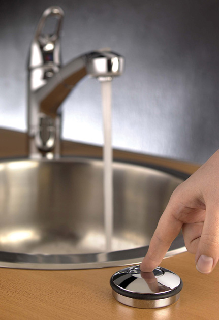 Der kleine Helfer ist eine formschöne Taste, die neben dem Spülbecken in die Küchenarbeitsplatte eingelassen wird. Der Clou: Drücken genügt - und der angeschlossene Wasserhahn gibt eine definierte Menge kalten Wassers ab. Wie viel Wasser aus dem Hahn fließen soll, lässt sich vorab einfach einstellen - möglich sind 100 bis 600 Milliliter. Danach schließt sich das Ventil von selbst. Der Vorteil: die Armatur bleibt unberührt, muss also hinterher auch nicht geputzt werden. Quick-Stop lässt sich mit allen Küchenarmaturen mit ausziehbarer Geschirrbrause kombinieren.