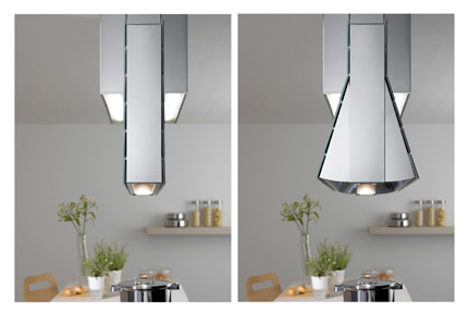 Der Haubenkörper der Dunstabzugshaube DA 5000 D öffnet sich beim Einschalten automatisch, und er schließt sich wieder, wenn das Gerät ausgeschaltet wird. Auch automatisch.