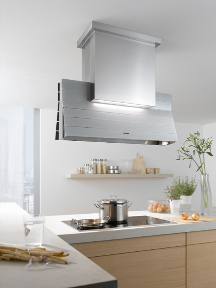 Im Betrieb dehnt sich die Öffnung von 120 auf 310 Millimeter. Das extravagante Design ist in dieser Form eine echte Neuheit. Ebenso wie die Bedienung, die über Sensorflächen auf dem Glas (Touch-Bedienung) erfolgt. Die DA 5000 D ist als Inselhaube für den Abluftbetrieb konzipiert. Über einer großzügigen Kochinsel angebracht, ist das Gerät mit seinem 110 Zentimeter breiten Haubenkörper ein imposanter Blickfang. Mit zwei doppelseitig saugenden Gebläsen wird eine Luftleistung von 1.300 m3/h in der Intensivstufe erreicht. Zur Ausstattung gehören drei Leistungsstufen plus Intensivstufe, Nachlaufsteuerung und Fettfilter-Sättigungsanzeige. Vier Edelstahlfilter sorgen für eine wirkungsvolle Fettabscheidung.
