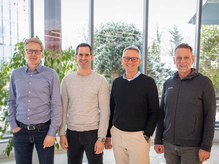 Gemeinsam für vernetzte Softwarelösungen im Bauwesen – das Führungsteam der Orca Group (v.l.n.r.): Jörg Dersch, CPO, Matthias Werner, CFO, Manfred Scholz, CEO, Christian Menk, CTPO. Bild: ORCA Software GmbH