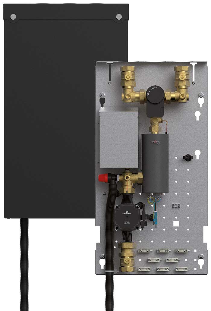 Der „BoostBloC“ wird über einen externen Regler angesteuert, der die Heizleistung stufenweise über drei Lastrelais schalten kann. Da die Pumpenansteuerung wahlweise über PWM-Signal oder Relais erfolgen kann, lässt sich die Station problemlos in bestehende Systeme einfügen.