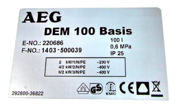 Vom Produktrückruf der Marke AEG sind die wandhängenden Warmwasserspeicher des Typs DEM 30 Basis, DEM 50 Basis, DEM 80 Basis, DEM 100 Basis und DEM 150 Basis betroffen.