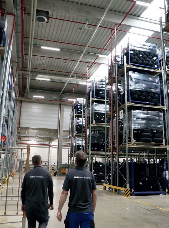 Das Logistikzentrum in Speyer: Der Reifenspezialist hat seine Brandgas-Dachventilatoren mit der Helios Lager-Zustandsdiagnostik ausgestattet, um die Sicherheit und Betriebskontinuität nachhaltig zu gewährleisten. (Helios Ventilatoren)