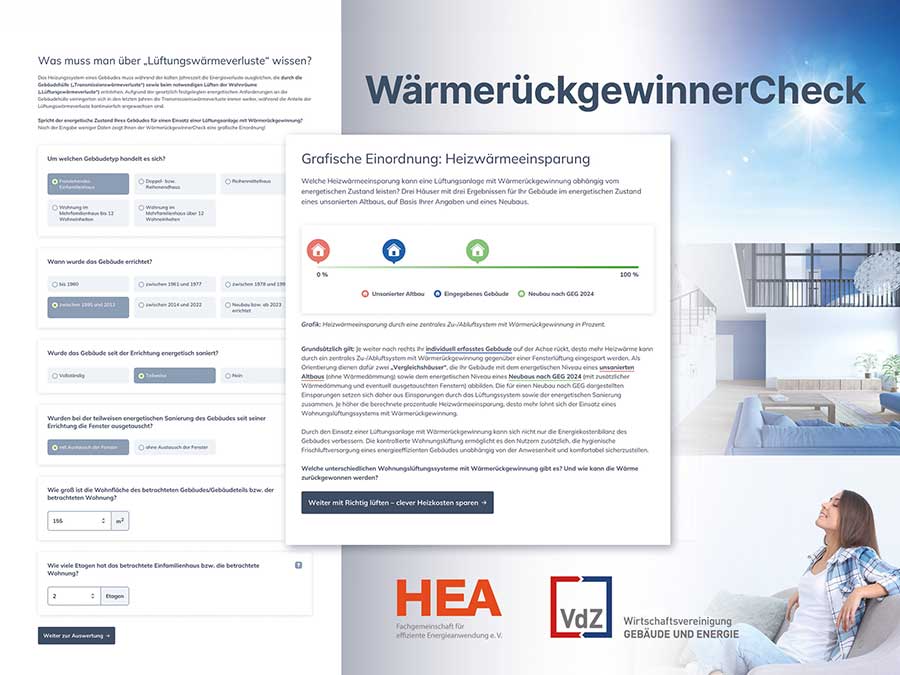 Tool von HEA und VdZ: WärmerückgewinnerCheck