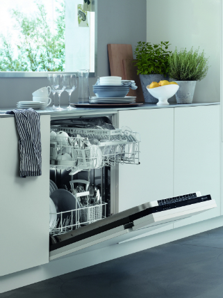 Und so funktioniert SteamFinish im Detail: Je nach verwendetem Programm wird nach Aktivierung der Funktion automatisch am Ende des Spülprozesses die nötige Menge an Frischwasser in einen speziellen Tank gefüllt und über einen Boiler erhitzt. Wenn die Temperatur hoch genug ist, wird über ein Ventil der Dampf in den Spülraum geleitet und schlägt sich dort als reine Dampftröpfchen ohne Restsalz am Geschirr nieder. „Daumennagelgroße Ablagerungen, wie sie bisher häufig bei Gläsern als Abtropfrückstand zu finden waren und deshalb immer ein lästiges manuelles Nachtrocknen erforderten, gehören der Vergangenheit an“, verspricht der Hersteller. Nach dem Bedampfen sorge die aktive Gebläsetrocknung für trockenes und makellos reines Geschirr. Auch Kunststoffteile, auf deren Oberflächen bisher häufig nach dem Spülen noch lästige Restwassertropfen anhafteten, sollen so trocken werden. Je nach Programm verbrauchen die Geräte der Adora-Serie im Minimum 7 Liter Wasser und 0,8 KWh Strom. Alle Geräte verfügen über Triple A. Sonderfunktionen sind „Alltag Kurz“ und „Sprint“ sowie speziell für den Schweizer Markt „Fondue/Raclette“ mit besonders aufmerksamer Einweichphase. Im vergrößerten Spülraum finden jetzt bis zu 150 Geschirrteile, Besteck und Gläser oder 13 Maßgedecke Platz. Im Unterkorb lassen sich bis zu 33 Zentimeter hohe Teile spülen, im Oberkorb Gläser bis zu 27,5 Zentimeter Höhe. Wer noch mehr Platz braucht, kann mit zwei einfachen Handgriffen den Oberkorb entriegeln und komplett herausnehmen. Eine optional einsetzbare Vario-Besteckauflage dient als dritte Beladungsebene. Weil Adora Geschirrspüler je nach Modell laut Hersteller mit nur noch 41 dB (A) arbeiten, informiert eine seitlich an der Tür angebrachte LED-Anzeige über den Programmstand bei vollintegrierten Modellen.