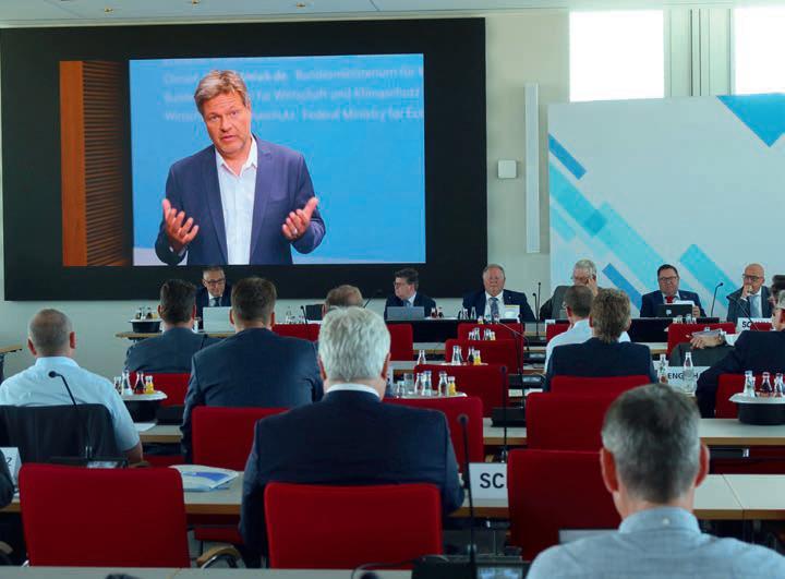 Eine bemerkenswerte Besonderheit wurde gleich zu Beginn der Veranstaltung per Videobotschaft auf die Leinwand übertragen: Ein mehrminütiges Grußwort von Wirtschaftsminister Robert Habeck zur Mitgliederversammlung. Er lobt darin die Expertise, die konstruktive Arbeit und die für die Gestaltung der Wärmewende notwendigen und hilfreichen Hinweise und stichhaltigen Argumente der SHK-Handwerksorganisation. „Machen Sie weiter so“, waren seine Worte und ermutigte den ZVSHK so weiterzumachen wie bisher.