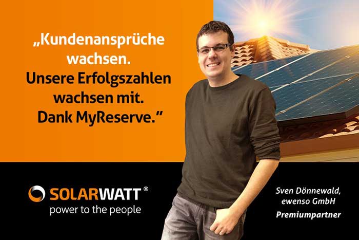 Mit seiner außergewöhnlichen Effizienz setzt MyReserve Maßstäbe im Speichermarkt (https://www.pv-magazine.de/2017/11/21/antworten-zum-webinar-effizienz-bei-batteriespeichern-ist-mehr-als-der-wirkungsgrad/). Dabei sorgt die kompakte Bauweise auch für geringen Materialbedarf und spart Platz bei Lagerung und Transport. Praktisch für Installateure und ein großes Plus für die Umwelt. 2018 will das Dresdner Unternehmen hinter Geschäftsführer Detlef Neuhaus die Zahl seiner Partner weiter vergrößern. Doch die Plätze sind begrenzt, denn das Unternehmen arbeitet mittlerweile schon mit mehr als 100 Premiumpartnern zusammen. Dabei handelt es sich um Installateure, die aufgrund Ihres Absatzvolumens einen besonderen Kundenstatus besitzen. SOLARWATT möchte gemeinsam mit seinen Premiumpartnern den Nachfragezuwachs 2018 fortführen.