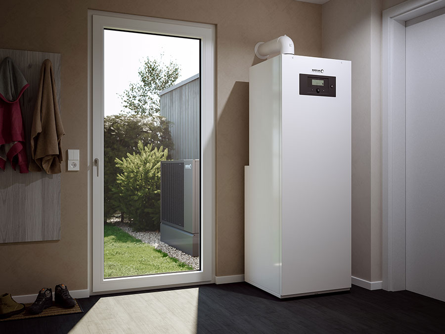 Der integrierte 150-l-Trinkwasserspeicher ist wahlweise mit Ladespeicher oder Rohrwendel erhältlich.