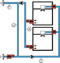 Bei dieser Lösung werden im Um- und Zuluftleitungssystem Rauchschutzklappen (mit Federrücklaufmotor) und Rauchauslöseeinrichtungen installiert. Das Ergebnis ist eine Anlage, in der die Rauchschutzklappen in der Schwelbrandphase eine Rauchübertragung verhindern. Die Brandschutzklappen stellen nach dem Schließen infolge einer thermischen Auslösung die Feuerwiderstandsfähigkeit im jeweilig betroffenen Brandabschnitt sicher. Einzelne Brandabschnitte können, falls sicherheitstechnisch relevant, in gleicher Weise nachgerüstet werden.