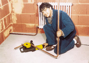 | Das Kaltbiegen von halbharten Kupferrohren ist auch in der Dimension 28 x 1,5 mm Außendurchmesser noch möglich. Aber Achtung: Nicht alle bisher im Markt angebotenen Biegegeräte sind für das Biegen halbharter Rohre geeignet. |