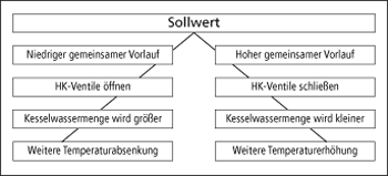 Wenn man bedenkt, dass diese Forderungen für alle möglichen hydraulischen Anordnungen gelten, dann erkennt man, dass an einen modernen Kesselfolgeregler heute große Anforderungen gestellt werden.