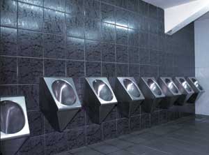 So wird vom Einsatz in Großküchen bis zu medizinischen Geräten und Ausstattungen in erster Linie überall dort Edelstahl eingesetzt, wo diese Faktoren berücksichtigt werden müssen. Auch in öffentlichen WC-Anlagen und Waschräumen hat sich Edelstahl nicht nur etabliert, sondern ist auf dem besten Wege, das am meisten verwendete Material zu werden. Deutschlands öffentliche Toilettenanlagen, in früheren Jahren häufig noch Stiefkind der Sauberkeit und ansprechenden Präsentation, gehen z.B. immer häufiger zu einer sanitären Ausstattung in Edelstahl über und können sich heute im internationalen Vergleich längst als besonders besucherfreundlich sehen lassen. Reihenwaschanlagen und Urinale aus Edelstahl sind für zahlreiche Mitarbeiter-Toiletten absolute Bedingung bei der Architektenplanung. Dennoch, bei allen Vorzügen sind Einwände gegen das Material nicht von der Hand zu weisen. Der an sich überaus robuste Werkstoff kann bei mangelnder Pflege oder wenn nicht sofort nachgewischt wird, zu unansehnlichen Fleckenbildungen neigen, die sich zwar entfernen lassen, aber zunächst den optischen Auftritt nicht gerade positiv unterstützen.