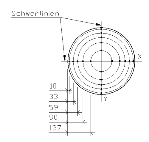 | Bild 2: Achseneinteilung beim Schwerlinienverfahren in mm gemäß DIN EN 12599. |