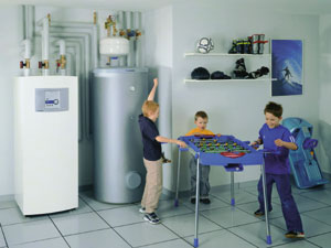 | Eine Kombination aus Erdwärmepumpe (Sole/Wasser) für Heizung und Warmwasserbereitung mit externem Warmwasserspeicher. Die TE-Reihe von Junkers umfasst einen Leistungsbereich von ca. 5 bis ca. 16 kW. |