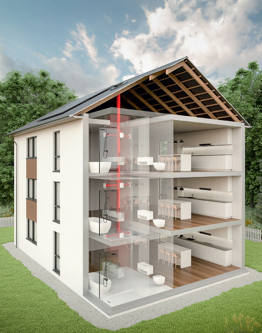 Die ventilatorgestützte Entlüftung innenliegender Bäder und Toiletten wird in DIN 18017-3 geregelt. Die Norm gilt unabhängig vom allgemeinen Lüftungskonzept und definiert die erforderlichen Abluftvolumenströme sowie technische Vorgaben für Außenbauteil-Luftdurchlässe (ALD) und Überström-Luftdurchlässe (ÜLD). Der Gastbeitrag aus dem Hause Helios Ventilatoren zeigt auf, worauf Fachbetriebe bei der Planung und Auslegung achten sollten.