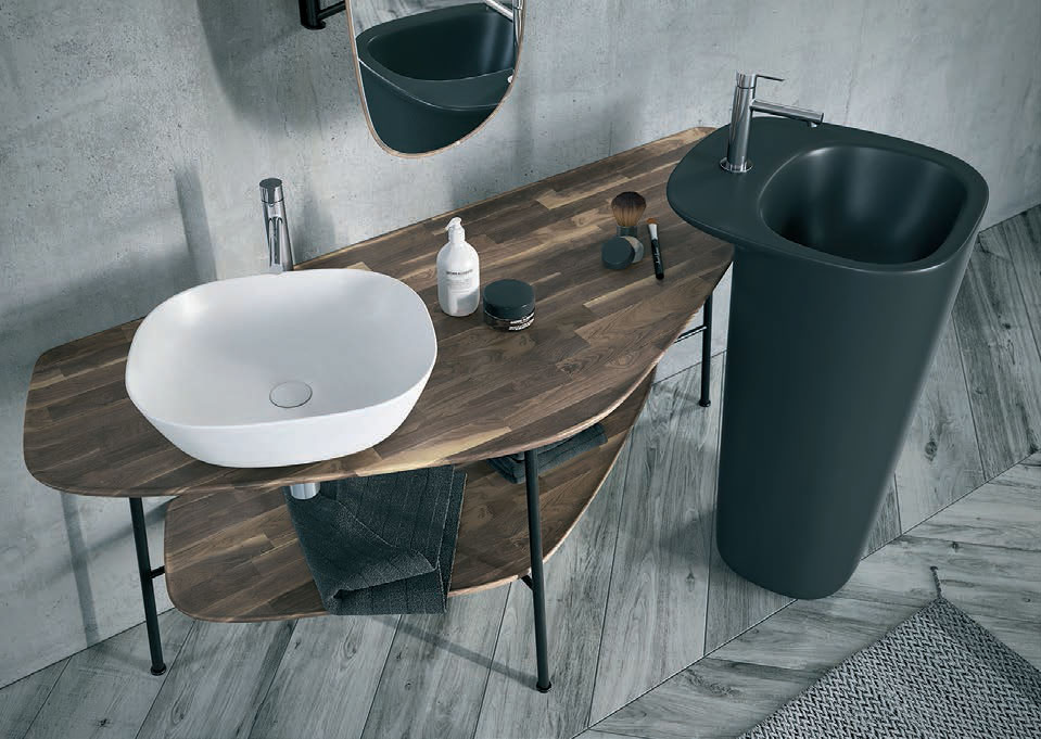 Der Waschtisch tritt in den Fokus der Individualisierung im privaten Bad. In die Auswahl der Badplaner gehören immer häufiger matte Farbtöne und farbige Armaturen, mit denen sich im Bad Akzente setzen lassen. Der folgende Beitrag gibt einen Überblick über Materialtrends und Individualisierung.
