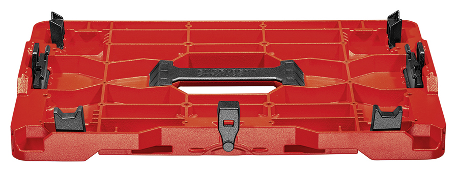 Grundlage für den Einsatz der Adapterplatte ist die Anwendung einer der acht neuen „Straussboxen“. In den unterschiedlichen Formaten findet von Kleinteilen über Werkzeuge wie Schraubendreher bis hin zu größeren Maschinen wie Handkreissägen alles seinen Platz. Das kleinste Exemplar lässt sich aufgrund der Lebensmittelzulassung auch als Brotdose nutzen. In allen Boxen sind Werkzeuge und Maschinen gemäß Schutzklasse IP43 vor Feuchtigkeit und Schmutz geschützt.
