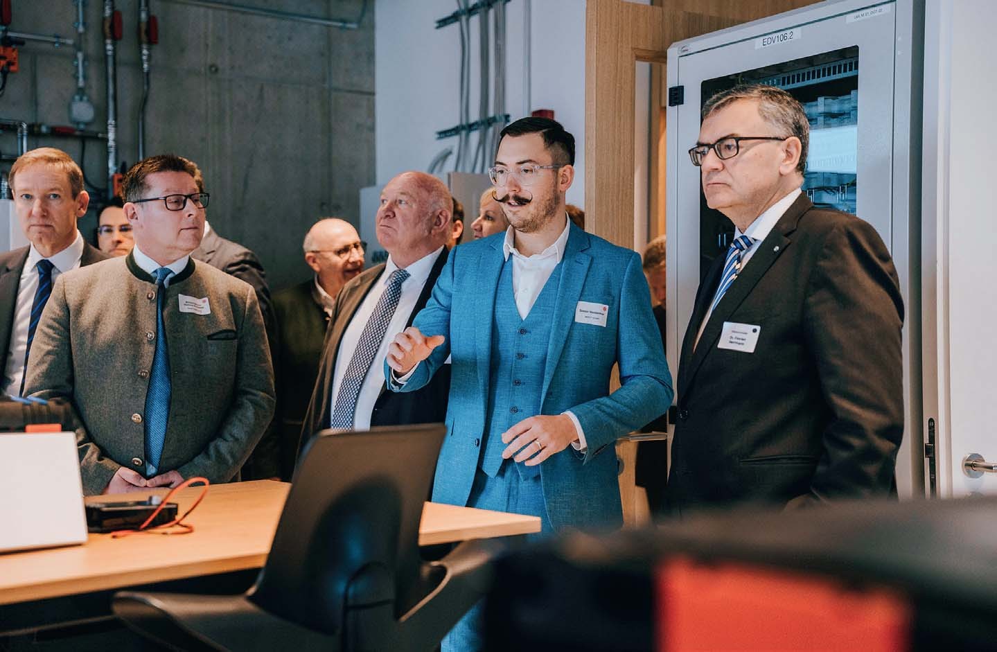 Das Einmalige an diesem Konzept ist die enge Kooperation zwischen einem Unternehmen und einer technischen Hochschule. Im zweiten Obergeschoss ist ein Technologietransferzentrum für nachhaltige Gebäudetechnik der Technischen Hochschule Deggendorf untergebracht. Hier forschen sie zu vier zentralen Themenfeldern: dem nachhaltigen Bauen und Betreiben von Gebäuden, der Digitalisierung in der Gebäudetechnik, dem Einsatz von Big Data und Künstlicher Intelligenz sowie der Wärmeerzeugung, Lüftungs- und Strömungstechnik. „Auf diese Zusammenarbeit, auf dieses Miteinander freuen wir uns sehr“, sagt Prof. Waldemar Berg, Präsident der Technischen Hochschule Deggendorf. Ziel sei es, gemeinsam praxisnahe Lösungen für die Gebäudetechnik von morgen zu entwickeln.