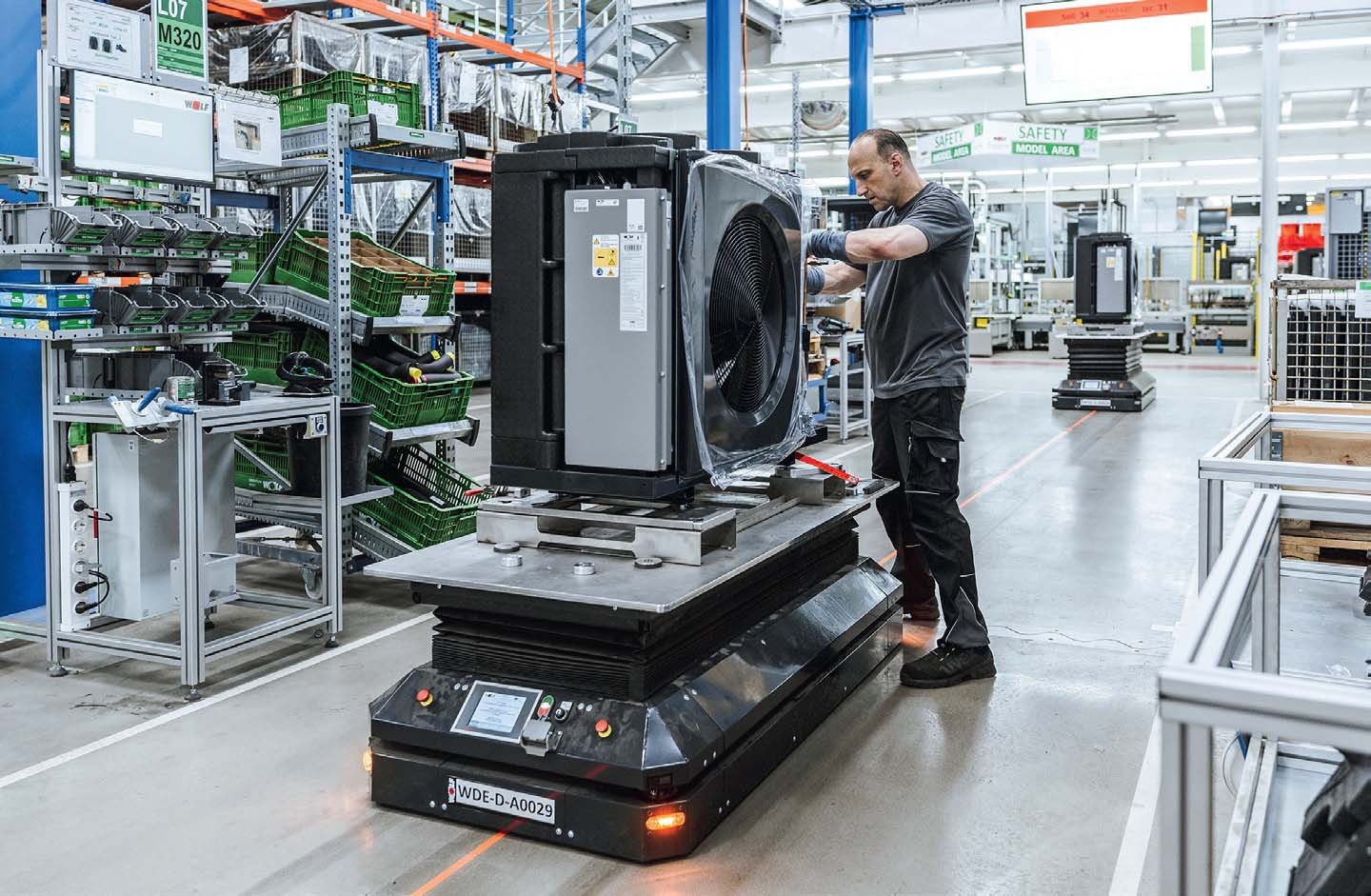 Das ist auch eine Innovation des Mainburger Unternehmens: Jeder einzelne Fertigungsschritt wird digital an der jeweiligen Montagestation ausgegeben. Dort werden sie von den Mitarbeitern abgearbeitet und gleichzeitig dokumentiert. Sie nennen es die „digitale Werkerführung“. „Unsere Produktion folgt den Prinzipien des World Class Manufacturings“ (WCM; z. dt. Weltklasse-Fertigung), so Amann. „Wir legen Wert auf höchste Standards bezüglich Qualität, Arbeitssicherheit und Ergonomie.“ Die wesentlichen Grundsätze dieser Managementmethode sind Fertigung nach Bedarf (Just-in-Time), ein Qualitätsmanagement mit einer Null-Toleranz gegenüber Mängeln und eine vorbeugende Wartung der Produktionsanlagen. Bei Wolf liegt zusätzlich ein Fokus auf Arbeitssicherheit und Ergonomie, alles zum Wohl der „Wölfe“, wie sich die Mitarbeiter hier selbst nennen.