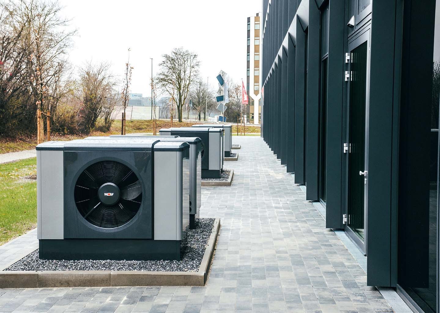 Die gesamte Heiz- und Lüftungstechnik des Herstellers ist im Campus-Gebäude verbaut. Dazu zählen sechs Luft-Wasser-Monoblock-Wärmepumpen „CHA-16“, die in Kaskade geschaltet sind, sowie neun Sole-Wasser-Wärmepumpen „BWS-1-16“. In Kombination mit modernen Belüftungsanlagen, wie dem „KG Top 2515“ oder dem „CKL evo 6100“ sorgen sie für ein angenehmes und gesundes Raumklima zu jeder Jahreszeit in dem dreistöckigen Gebäude mit einer Nutzfläche von 4500 m2. Moderne RLT-Geräte zusammen mit intelligenter Regelungstechnik steuern die Systeme.