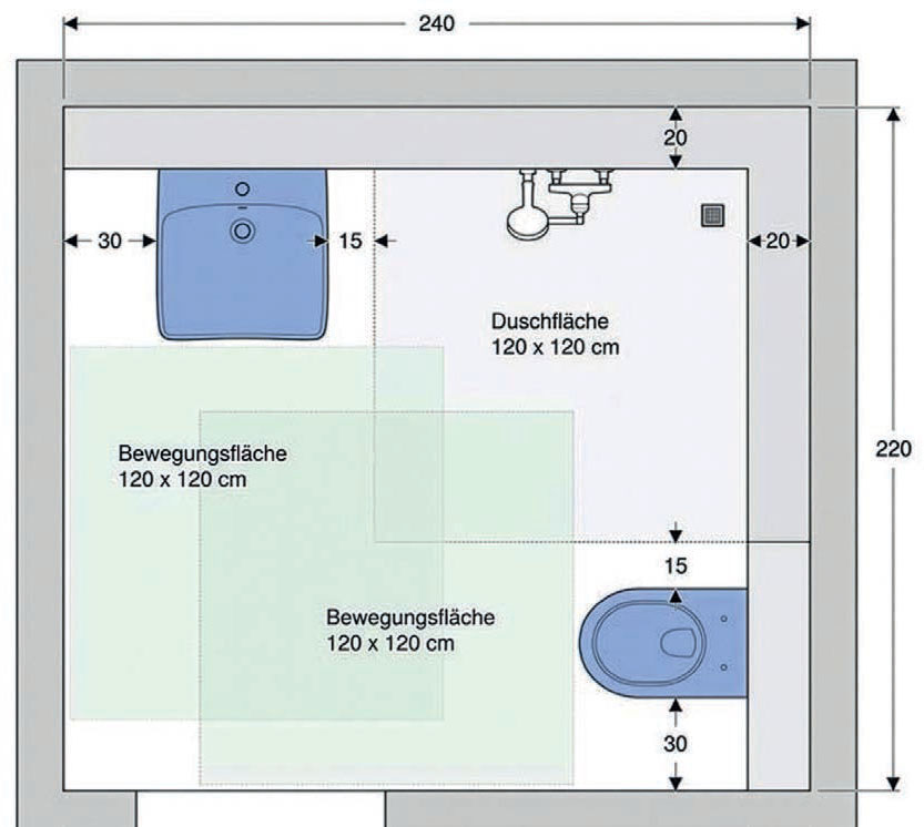 Ansätze für DIN-gerechte Barrierefreiheit und für barrierearme Privatbäder