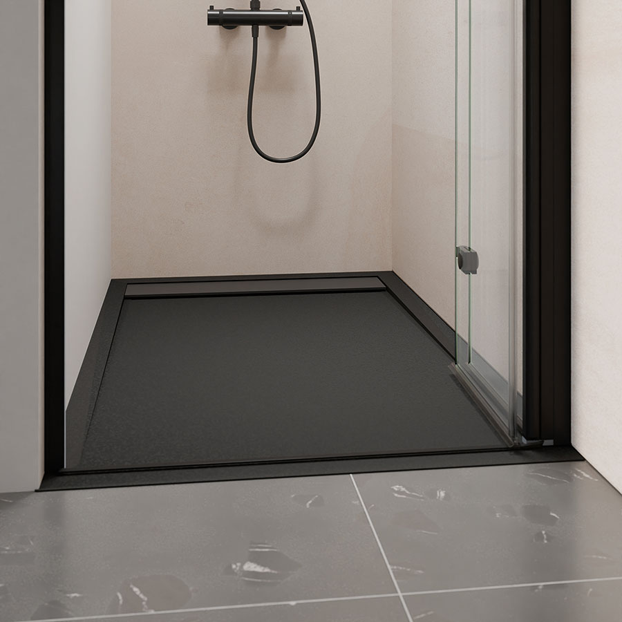 Die Wannen sind in verschiedenen Formaten mit Punkt- oder Rinnenablauf erhältlich und können bei besonderen baulichen Anforderungen passgenau zugeschnitten werden. Für die Montage stehen Komponenten wie Einbaurahmen, Wannenfüße und Dichtsets zur Verfügung. „Dadurch lassen sich unterschiedliche Einbausituationen sicher realisieren, ohne das Systemprinzip zu verlassen“, heißt es von Duschwelten.
