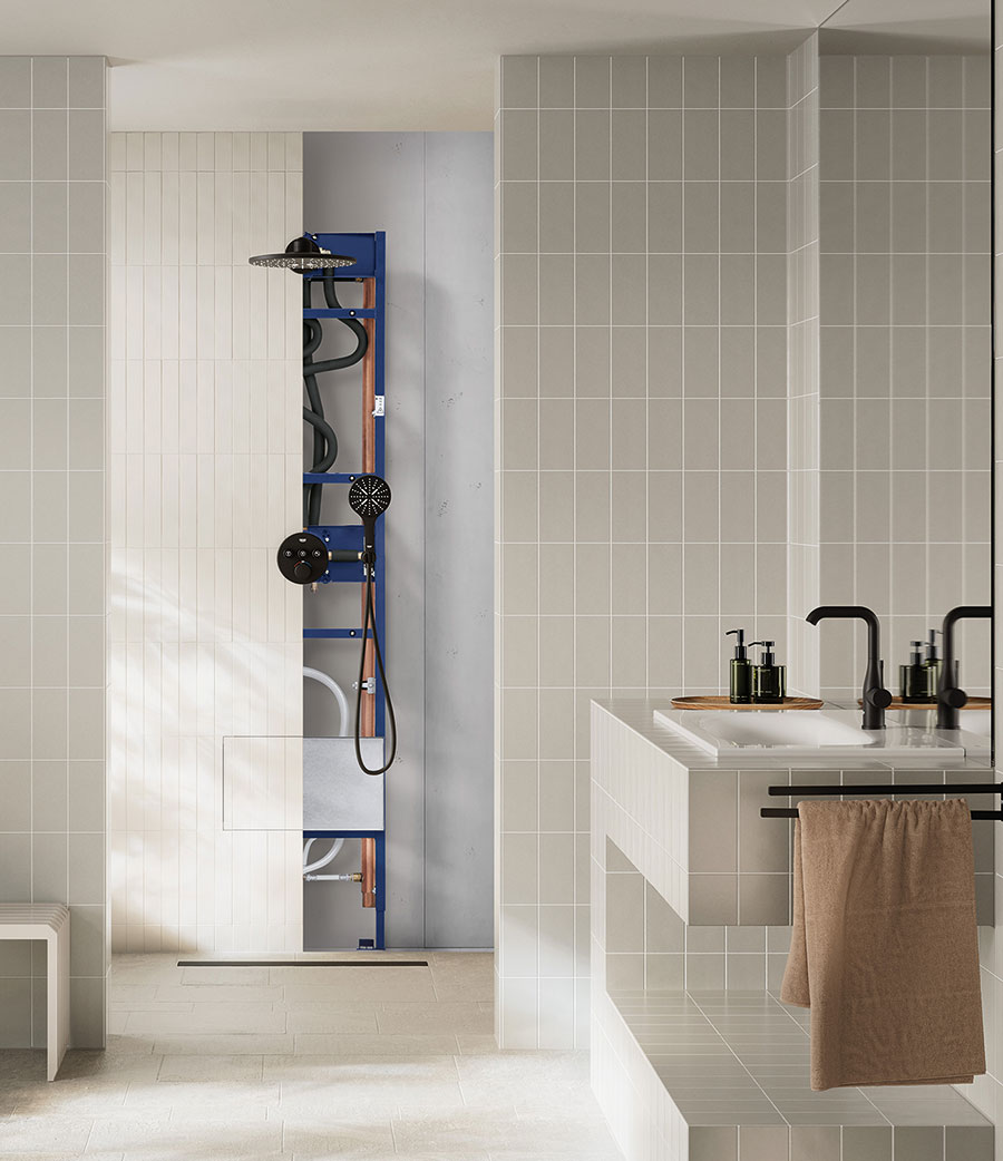Grohe führt mit „Rapido Heat Recovery“ erstmals ein Unterputz-Duschsystem ein, das die Wärmerückgewinnung aus Duschabwasser in ein vorkonfektioniertes Installationsmodul integriert.