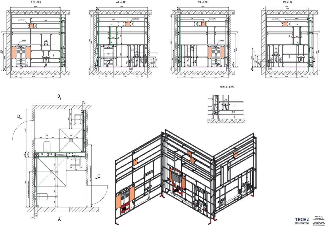 Kobold: Wir benötigen vor allem die Werkplanung, Gebäudeschnitte, die Bad-Detailplanung und die TGA-Planung, um Wandtypen, Durchbrüche und Schachtgrößen abzustimmen. Je früher wir diese Unterlagen erhalten, desto präziser können wir die Installation definieren und wirtschaftliche Alternativen zur konventionellen Bauweise aufzeigen.