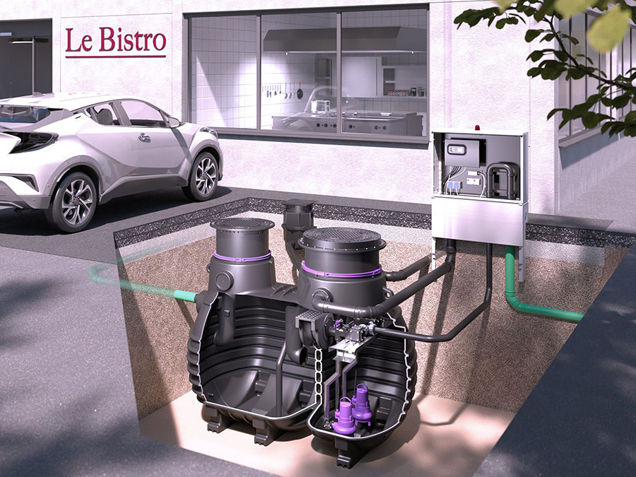 Mit dem „EasyClean ground Multi“ bietet Kessel eine kombinierte Lösung für Fettabscheidung, Probenahme und Abwasserförderung im Erdeinbau. Die Systemeinheit integriert alle Komponenten in einem kompakten, aufeinander abgestimmten Zweikammerbehälter aus rotationsgeformtem Polyethylen.