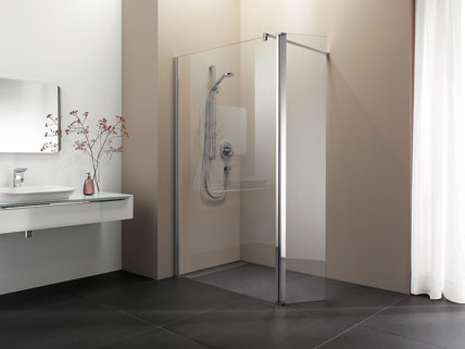 Ebenfalls freien Zugang in den Duschbereich bieten die Serien „S700“ und „S707“, die um einseitig wandangeschlagene Walk-In-Lösungen in 8-mm-Einscheiben-Sicherheitsglas ergänzt wurden. Damit sind auch hier offene und geräumige Duschplätze möglich.