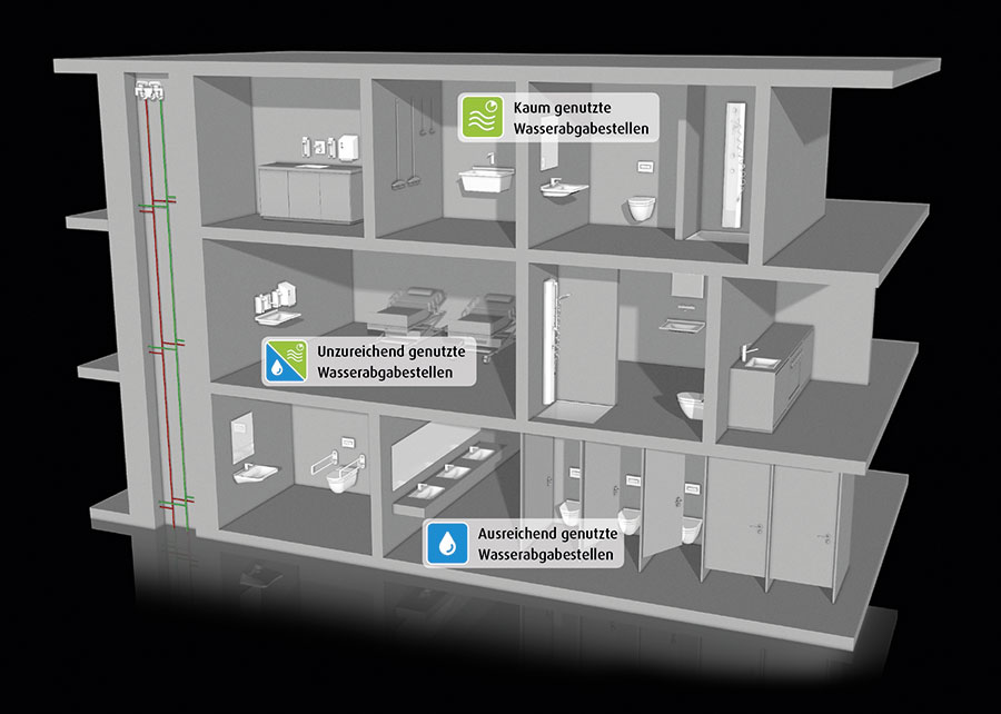 Um die Hygiene in Trinkwasser-Installationen aufrechtzuerhalten, muss der bestimmungsgemäße Betrieb einer jeden Armatur im Leitungsnetz gewährleistet werden. Auch muss die Auskühlung der Warmwasserseite unter 55°C vermieden werden.